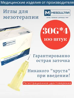 Иглы для мезотерапии 30G*4мм, 100 штук