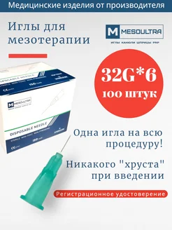 Иглы для мезотерапии 32G*4мм, 100 штук