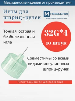 Иглы для шприц-ручек 32g*4mm, инсулиновые, 10 штук