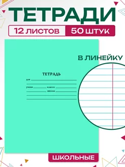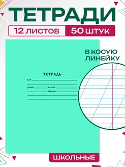 Тетрадь школьная в косую линейку 12 листов в наборе 50 шт