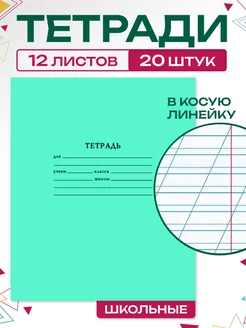 Тетрадь школьная в косую линейку 12 листов 20 штук