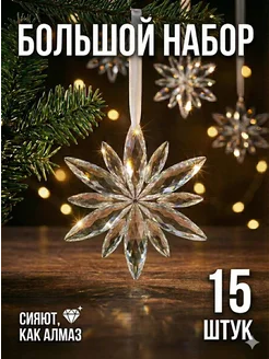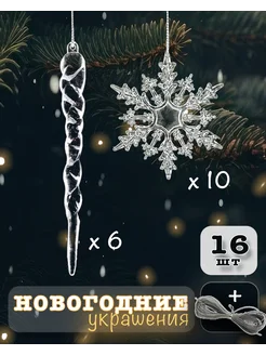 Елочные игрушки прозрачные сосульки снежинки ключики набор