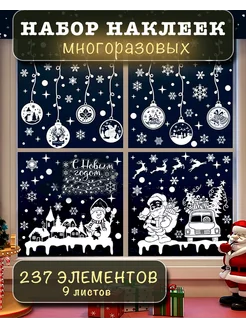 Новогодние украшения наклейки снежинки на окна многоразовые