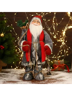 Дед Мороз В красно-серой шубке и варежках двигается 17х45 см