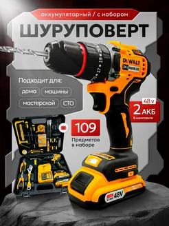 Шуруповерт аккумуляторный щеточный с набором инструментов