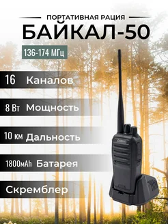 Радиостанция Байкал-50 (136-174МГц) 1800 мАч 8Вт СЗУ-50