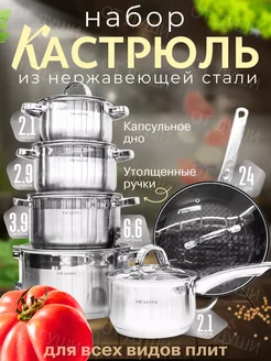 Набор кастрюль и сковорода из нержавеющей стали с крышками