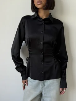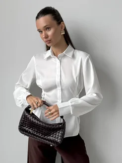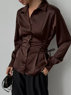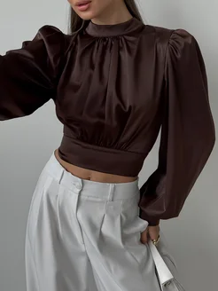Блузка топ нарядная шелковая с длинным рукавом фонарик