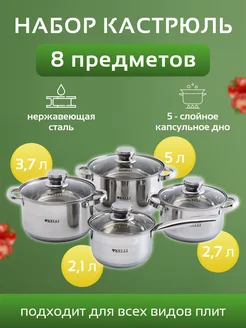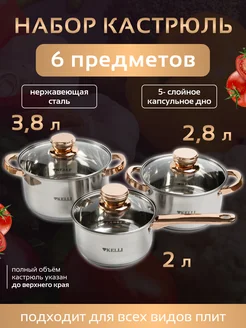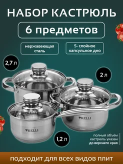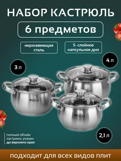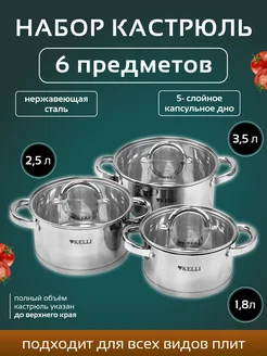 Набор кастрюль из нержавеющей стали с крышками 3 шт
