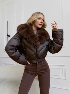 Пуховик зимний короткий с натуральным мехом