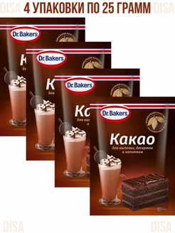 Какао-порошок для выпечки, десертов и напитков, 4шт. по 25г