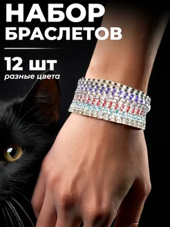 Браслет 12 шт со стразами на руку тонкие блестящие