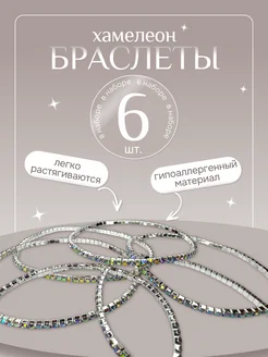 Браслет 6 шт со стразами на руку тонкие блестящие хамелеон