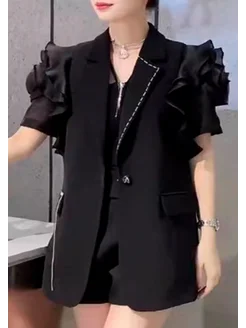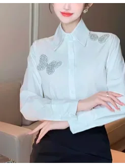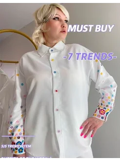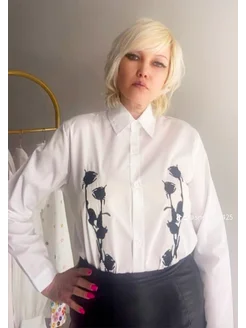 Рубашка оверсайз с вышивкой на рукаве офисная