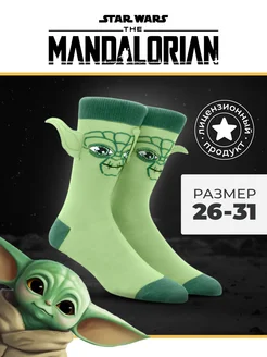 Прикольные носки высокие с принтом Йода детские