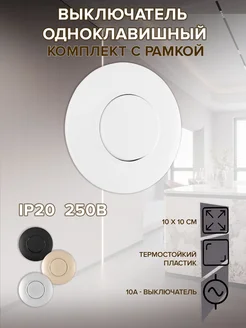 Выключатель света одноклавишный круглый с рамкой
