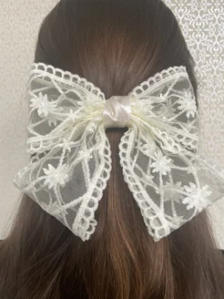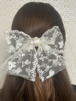 заколка-автомат бант в школу гипюровый