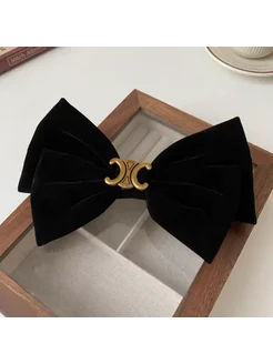 бархатная заколка - автомат бант с логотипом