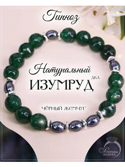 Браслет из натуральных камней Изумруд и Черный Жемчуг