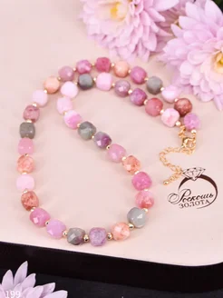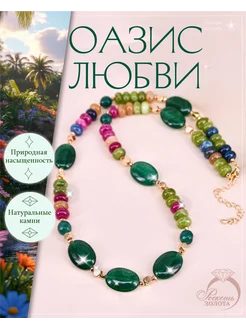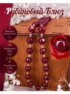 Колье бусы из натурального Сапфира и Горного Хрусталя