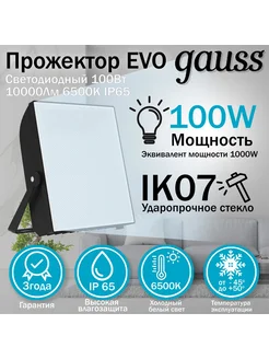 Прожектор EVO 100W 10000lm 100-240V IP65 черный LED
