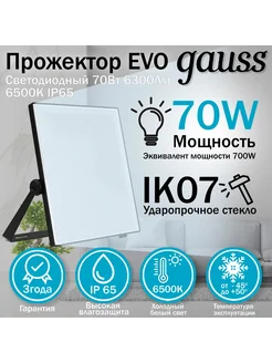 Прожектор EVO 70W 6300lm 100-240V IP65 черный LED