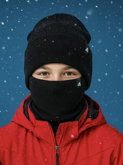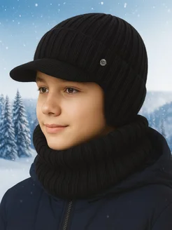 Шапка для мальчика зимняя со снудом комплект на флисе