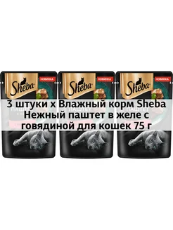 3 x Влажный корм Нежный паштет в желе с говядиной для кошек