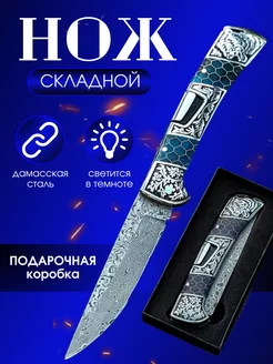 Складной нож Тигр из дамасской стали с фосфорной вставкой