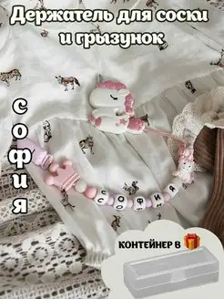 Держатель для пустышки именной прорезыватель, София