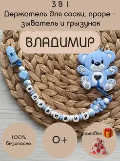 Именной держатель для соски пустышки прорезыватель Владимир