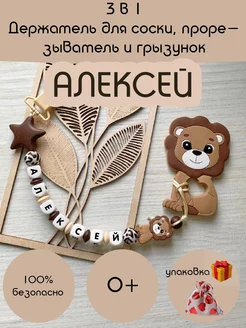 Именной держатель для соски пустышки и грызунок, Алексей