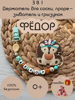 Именной держатель для соски пустышки и грызунок, Фёдор