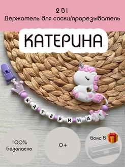 Именной держатель для соски пустышки и грызунок, Катерина