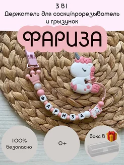 Держатель для соски пустышки именной и грызунок, Фариза