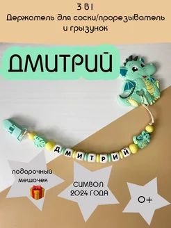 Именной держатель для соски и грызунок Дмитрий