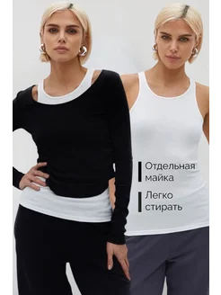 Лонгслив облегающий двойной с майкой