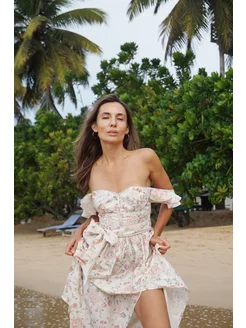 Платье сарафан женский летний в цветочек с открытыми плечами