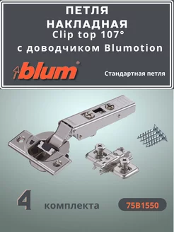 Петля с доводчиком Блюм накладная, 107°, 4шт Clip top