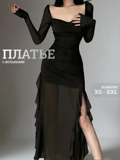 Платье y2k облегающее длинное с воланами