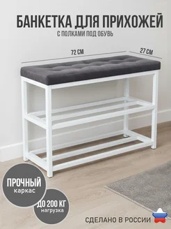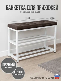 Банкетка для прихожей с мягким сиденьем и полкой под обувь