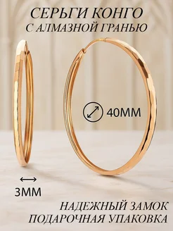 Ювелирные серьги конго серебро 925 585 с алмазной гранью