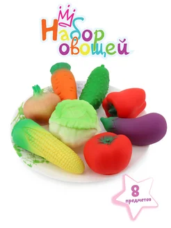 Игрушечные резиновые Овощи (продукты, еда) для детей 8 пр