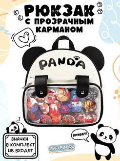 Рюкзак y2k школьный с прозрачным карманом для значков Панда