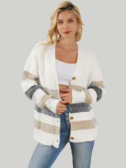 Длинный полосатый кардиган с карманами в стиле тай-дай