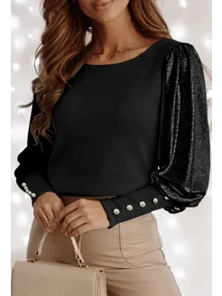 Блузка с блестящими рукавами-фонариками на пуговицах