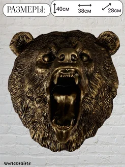 Сувенир - панно Медведь оскал бронзовый