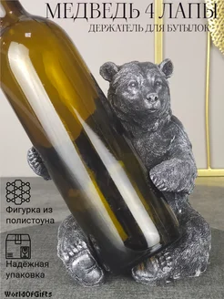 Держатель для бутылок интерьерный "Медведь 4 лапы" серебро