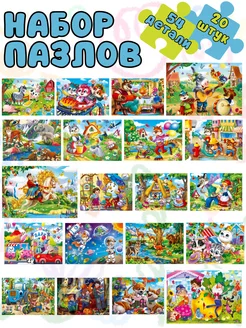 Пазлы для детей Три кота и оранжевая корова 54 детали 20 шт