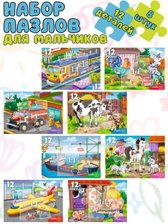 Набор пазлов для мальчиков 12 элементов 8 шт